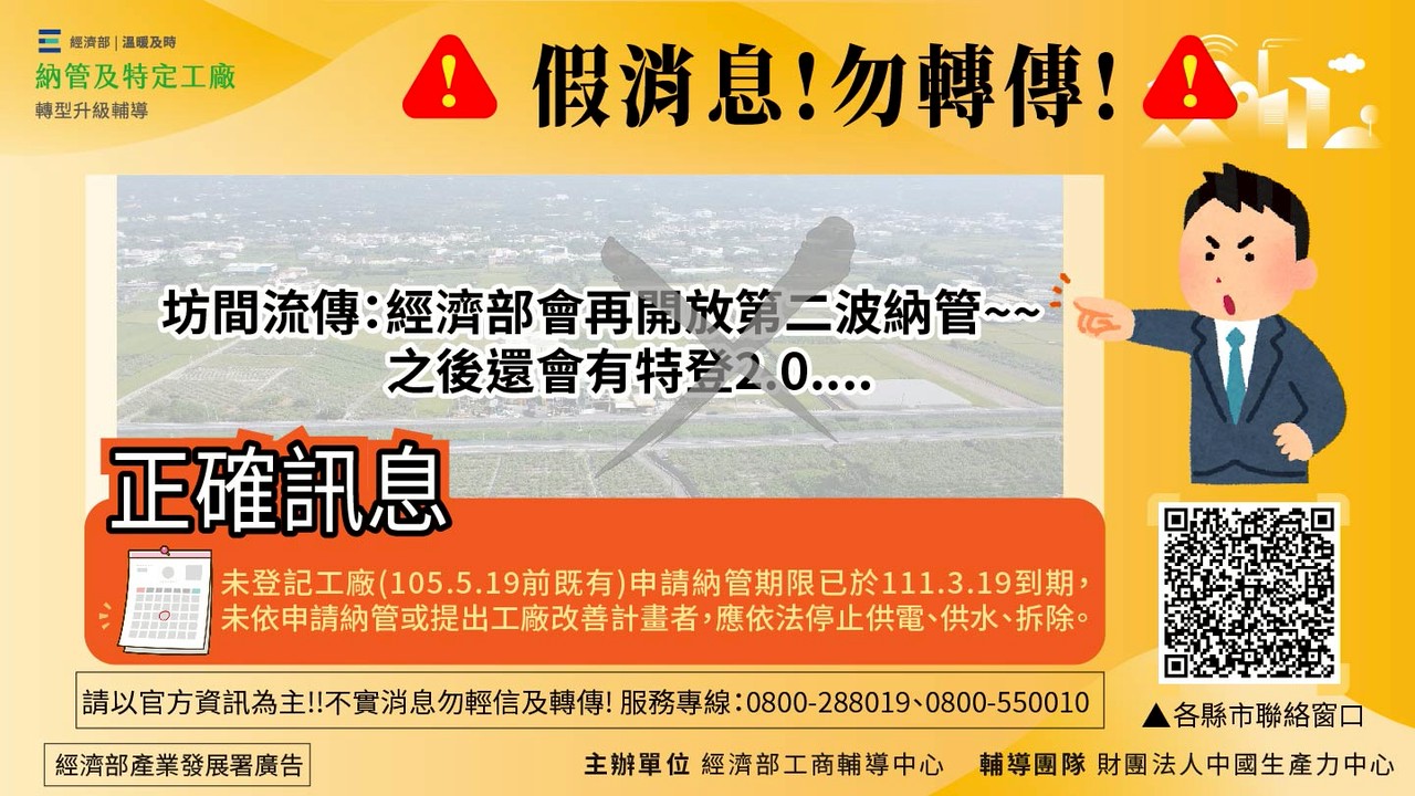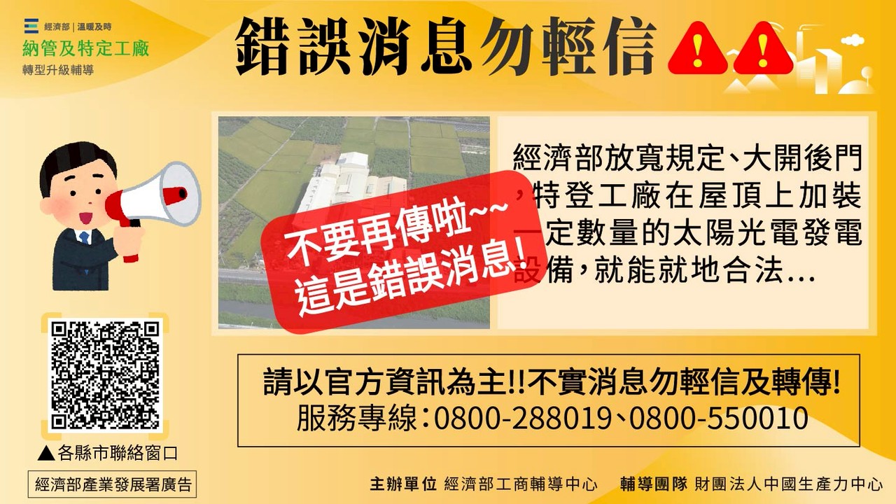 經濟部澄清特定工廠錯誤消息之情事